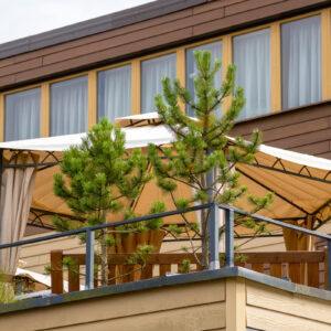 Оформление садового навеса нужно продумывать тщательно – от места его расположения до формы, габаритов. Особое внимание уделяют стилистическим особенностям, чтобы постройка не выделялась из общего ансамбля, гармонично выглядела на фоне дома, других сооружений, двора. Самый популярный стиль беседок – классика, в основе которой две характеристики – элегантность и минимализм. Еще недавно классические перголы изготавливали, преимущественно, из дерева, но сейчас владельцы чаще предпочитают добавить современности и купить модели из алюминия с раздвижной крышей и боковинами. Форма классических беседок бывает различной: